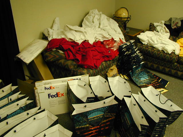 | I arrive at DavidN's place and find tons of quality shirts. |